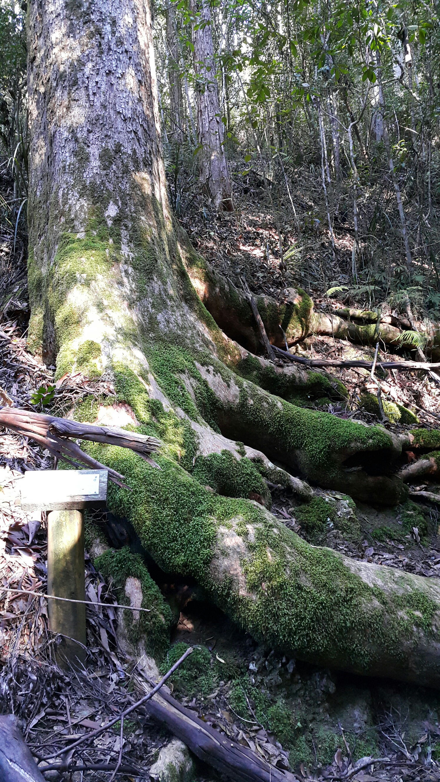 Thinking we’d explore the observatory in the hope the weather might clear and the creek fall a bit, we headed back to the main road. But, since it was a 15km back and forth, and we noticed a nearby hiking car park sign a bit further along the road, we decided to explore there instead. Jackpot! It was the main car park for the walk we had planned to do. And the map promised a short loop walk around Gould’s Circuit, which even in the squally weather should be manageable.