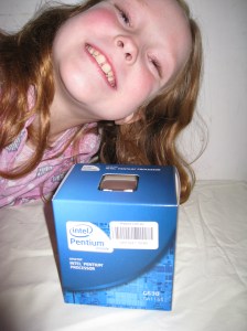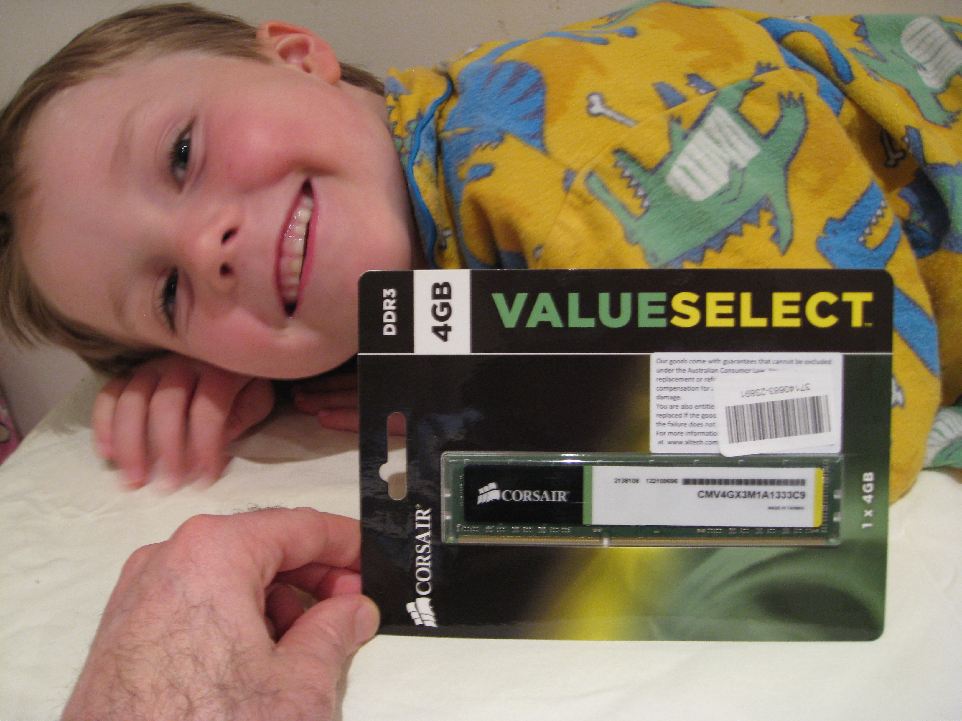 The motherboard was everyone’s favourite part name, so you get a bonus picture of that. His sister was a bit teary due to some sibling tension over posing rights.