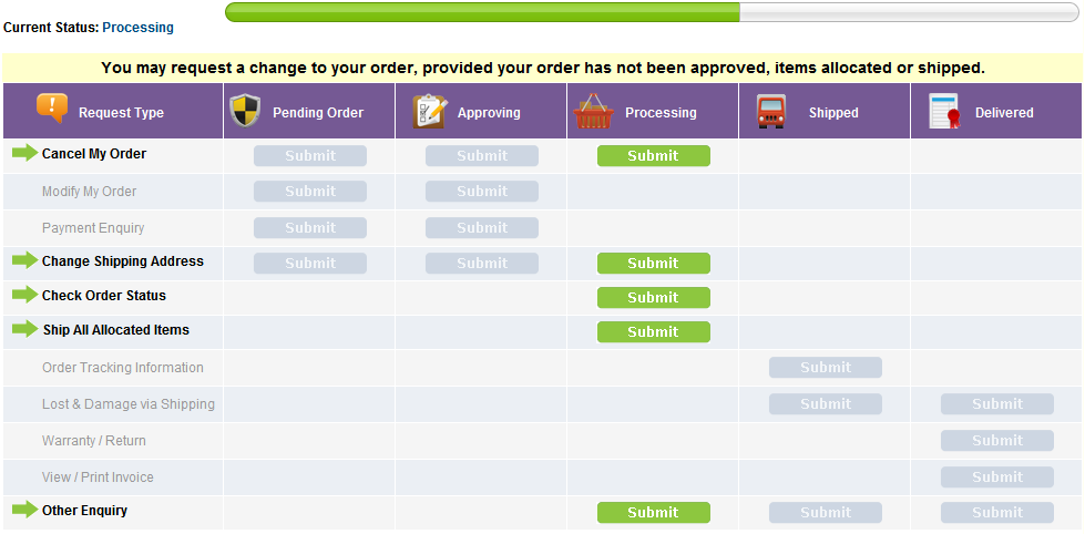 “The order is being picked from stock, packed & prepared for delivery and sent for delivery with a courier. The order will remain in this status until we have confirmation from the warehouse that the order has been shipped, which sometimes may occur as long as 1-2 days after the order has been shipped, so it is not uncommon for the order to remain in this status even once you have taken delivery of the order. If the order is in this status for a prolonged period of time (i.e. more than 5 days), it may mean that some or all items in the order are on back order (i.e. Not in stock and waiting to be received from supplier before they can be shipped to you) and we recommend that that you check the Order History section of your Order Information page. If it is not clear what is happening with the order from the Order History section of the Order Information page, please contact us and we will promptly find out and let you know the exact status of your order.”